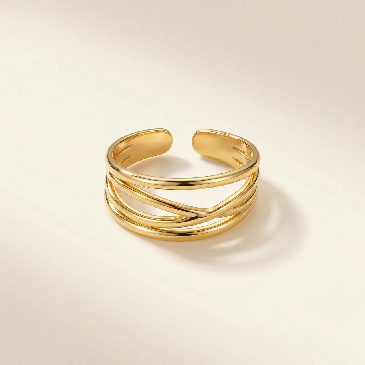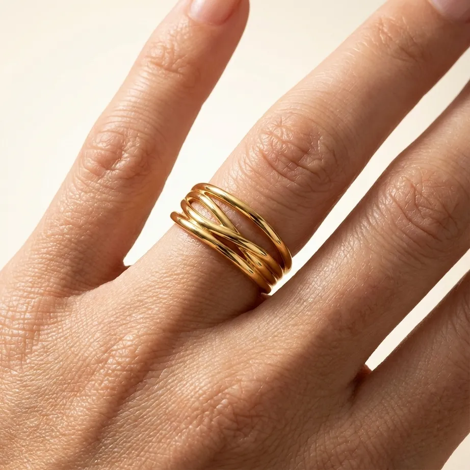 Cette bague ajustable. Minimaliste et fluide, cette bague capture la lumière avec élégance et mouvement, pour un style moderne et raffiné.